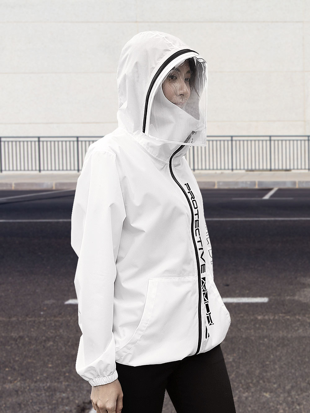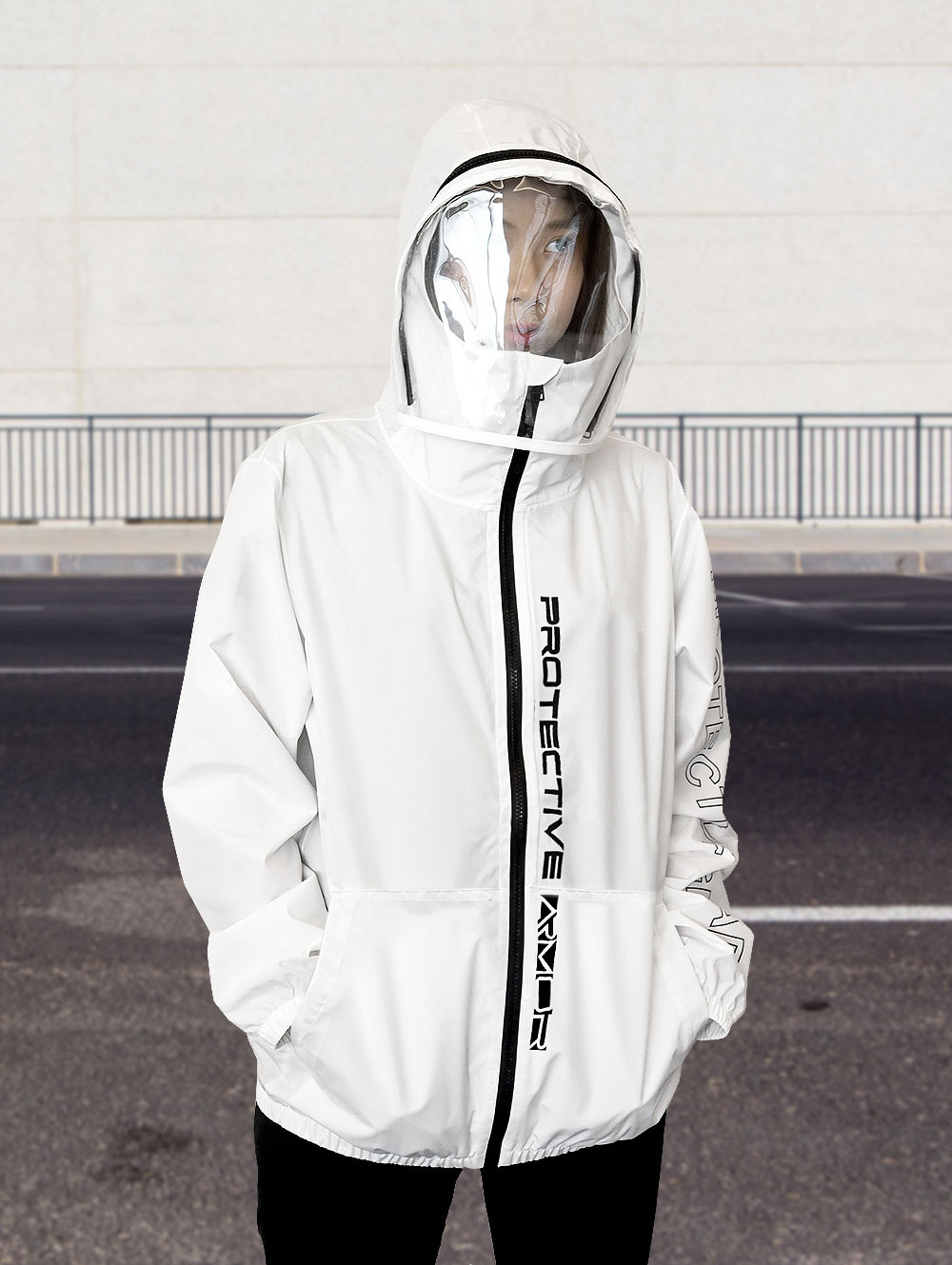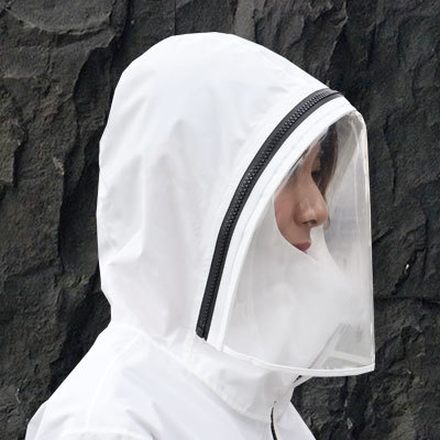 加長版面罩,防起霧全透明材質,側緣拉鍊簡單即可拆卸,給面部最完整的防護。