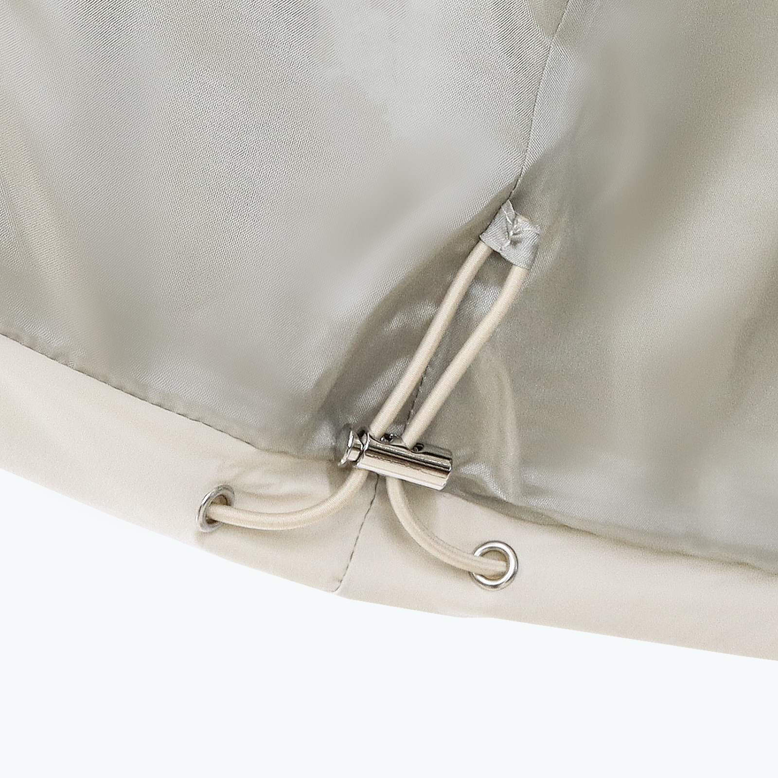 衣身下擺內側兩邊均附有束口設計,符合各種身形,完美的包覆可防止冷空氣從下方入侵,達到最佳的保暖效果。